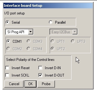 (COM1, COM2) que se corresponda con el conector que hemos utilizado.
